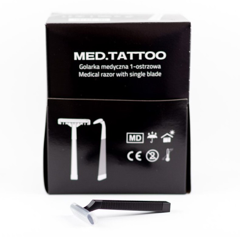 Holicí strojek pro lékařské a kosmetické zákroky. Účinně a bezpečně odstraňuje chloupky bez poškrábání nebo pořezání. Ideální pro tetovací salony jako součást základní hygienické sady. Výrobek je k dispozici v balení po 100 kusech.