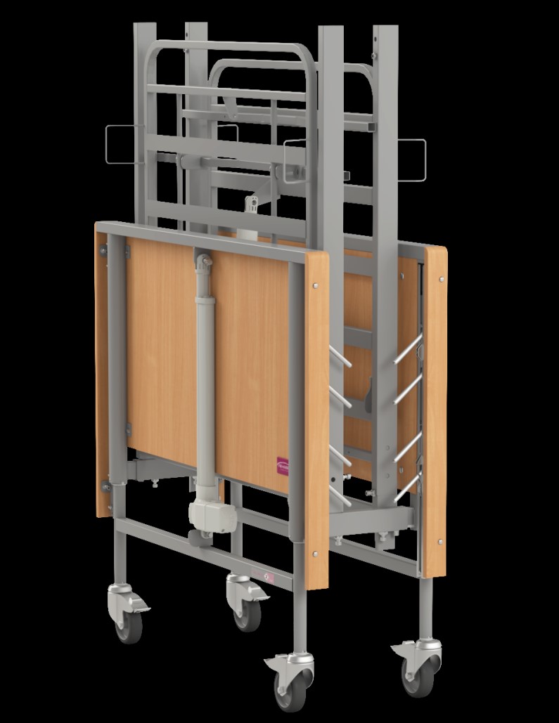 Čtyřdílná spací plocha ze snadno dezinfikovatelných 40 mm širokých kovových lamel nebo dřevěných pružinových lamel