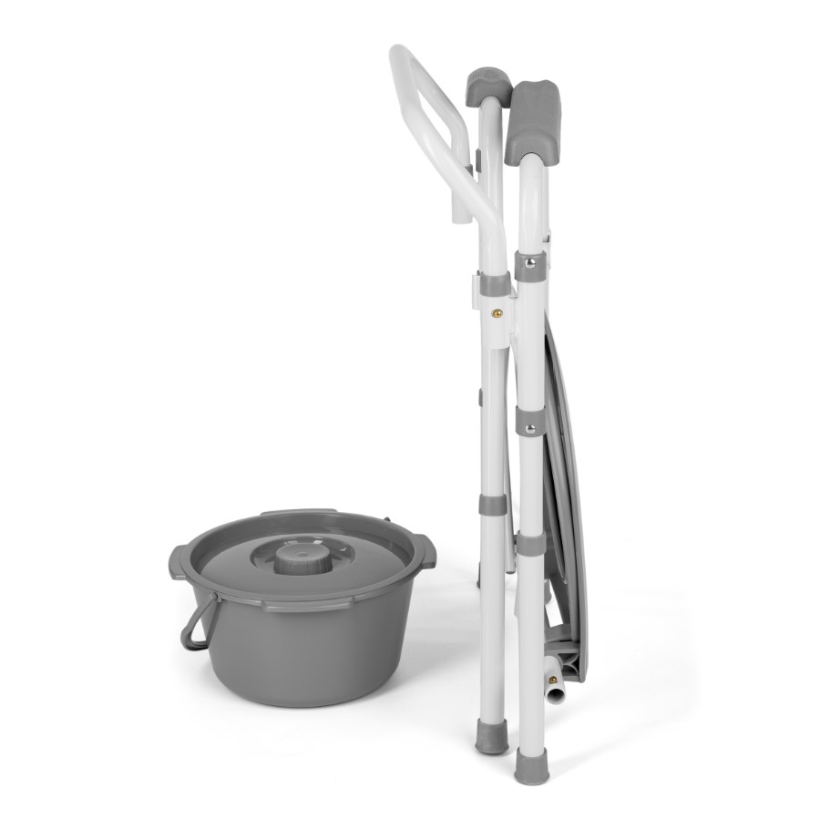 Skládací toaletní židle s rychloupínacími spojkami je asistenční pomůcka, která uživateli usnadňuje provádění fyziologických činností. Doporučuje se pro osoby, které mají problémy se samostatným pohybem, s dysfunkcemi a omezenou pohyblivostí a pro ty, kteří ztratili schopnost samostatně se posadit a vstát. Židle má funkci toalety díky vybavení sanitární vaničkou pod sedadlem. Usnadňuje uživateli fyziologické a pečovatelské činnosti.